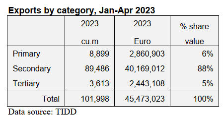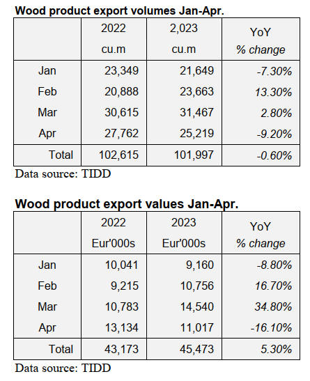 Eur366/cu.m, plywood (regional market) Eur394/cu.m and