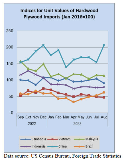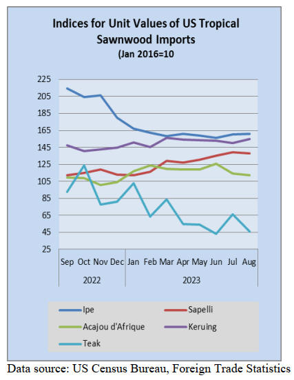 while imports of Mahogany, Keruing, Iroko, and Padauk