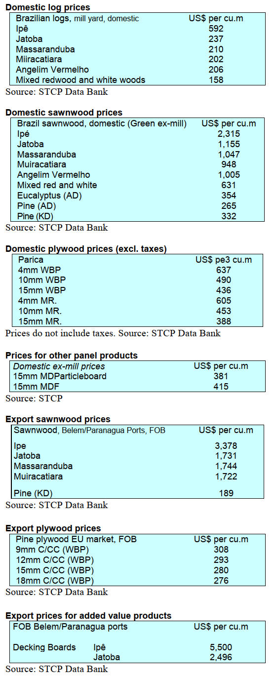 in log deliveries to mills. In Gabon, heavy up-country rain