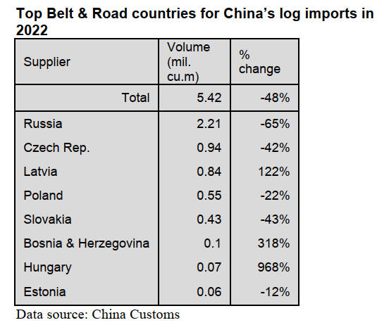 from top Belt & Road countries, Thailand (3.85 mil. cu.m,