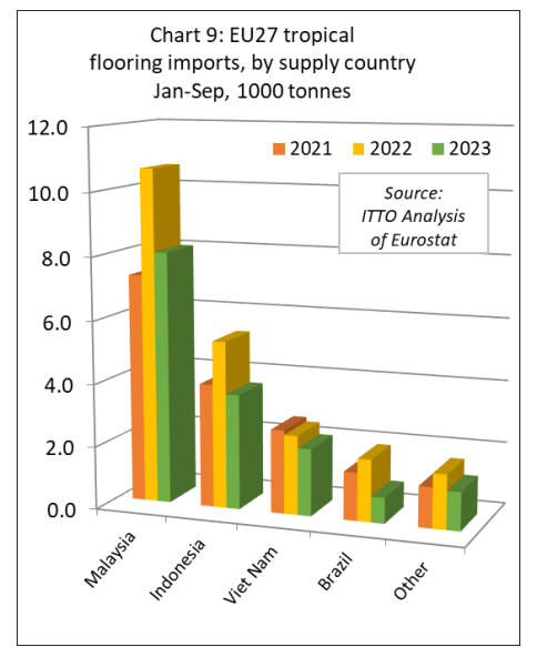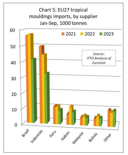 The EU27 imported 111,000 tonnes of mouldings/decking
