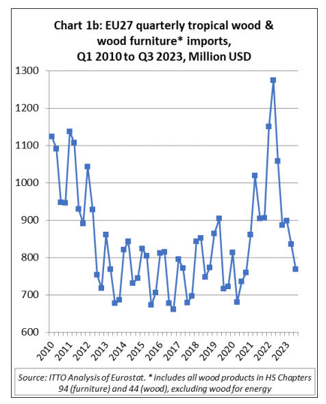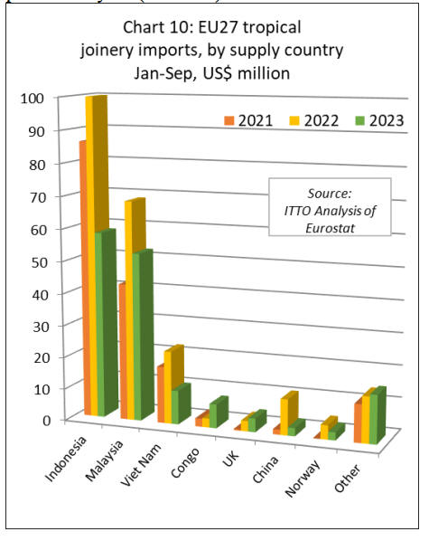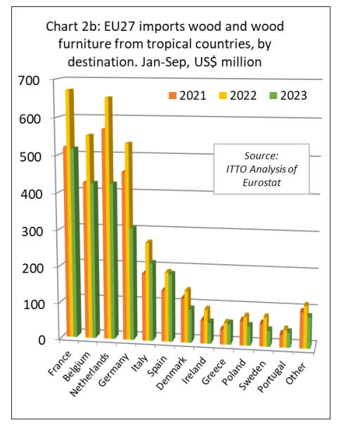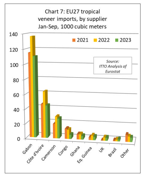 also declined from Côte d'Ivoire (-30% to 44,800 cubic