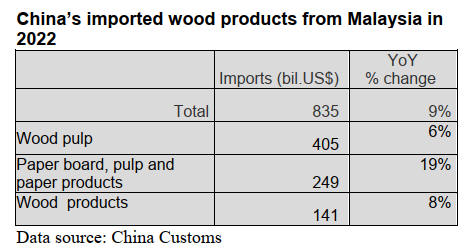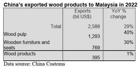 to Malaysia in 2022, namely wood pulp; wood furniture