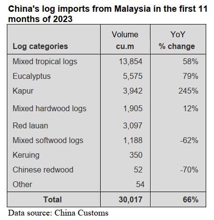 of 2023 rose 66% to 30,017 cubic metres valued at