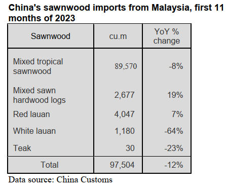 months of 2023 fell 12% to 97,504 cubic metres valued at