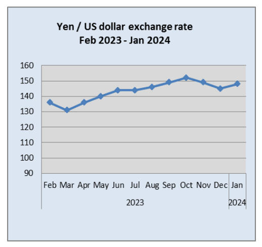 high cost of imports because of the weakening yen