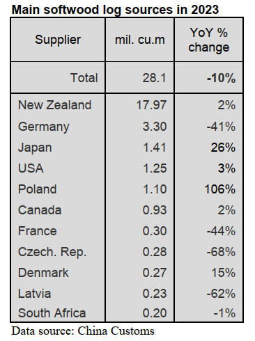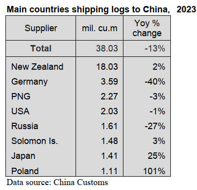 China Customs data shows log imports in 2023 totalled