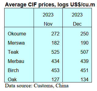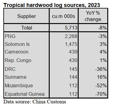 log imports in 2023. China’s tropical hardwood log