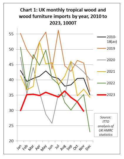UK imports of tropical sawnwood were 92,346 cu.m in the