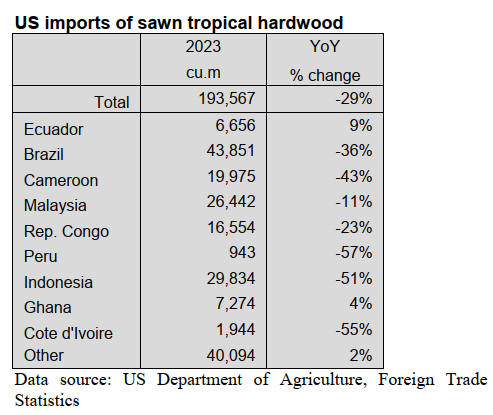 2023, a decline of 29%. Imports of Sapelli and Ipe, which