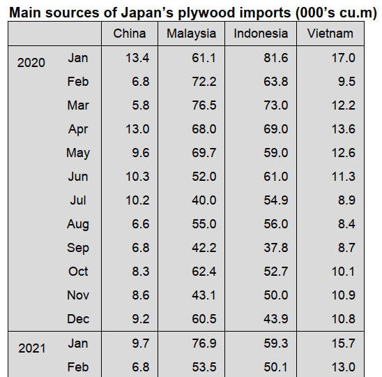 logs. Imported plywood is under 2,000,000 cbms. MDF,