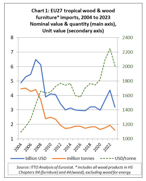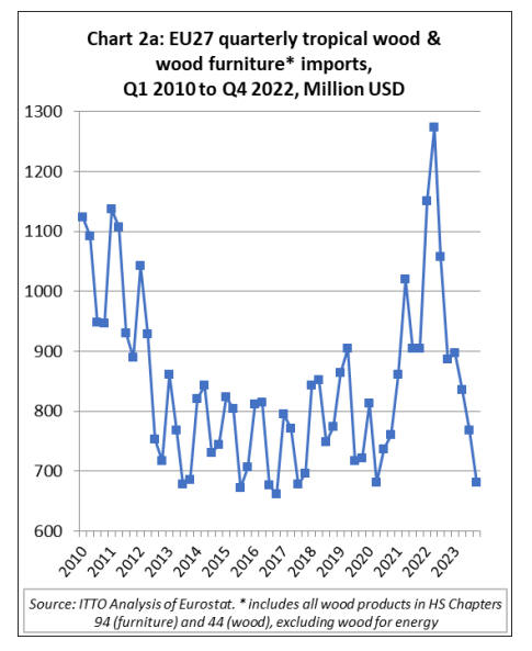 EU27 tropical wooden furniture imports down by a