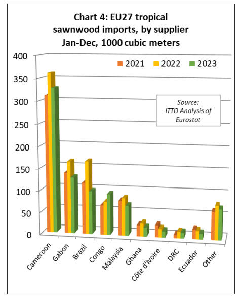 The only significant increases in tropical sawnwood