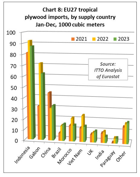 Imports of tropical veneer from Gabon, by far the largest