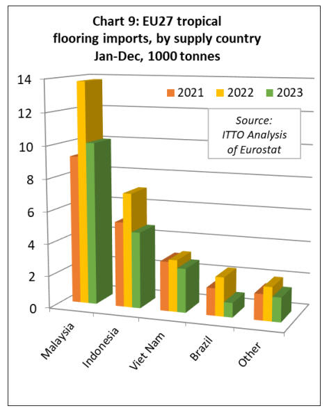EU27 imports of tropical flooring decline 30% in 2023