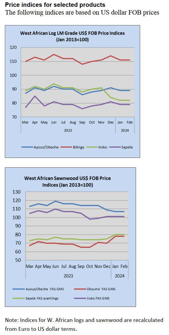 movingui while demand for ovangkol/shedua has cooled.