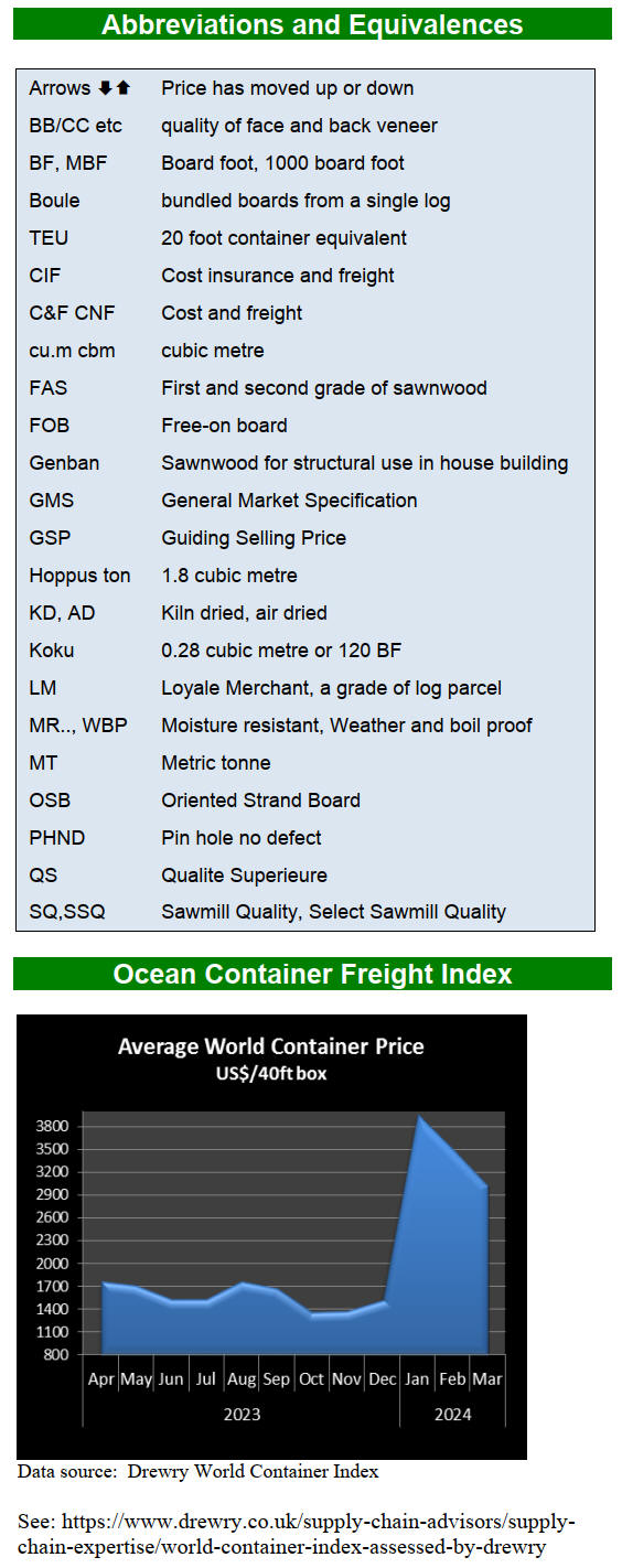 buying interest in China for species like bilinga, padouk,
