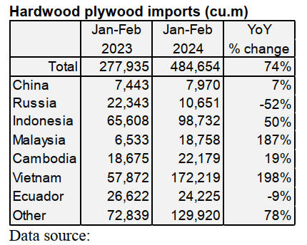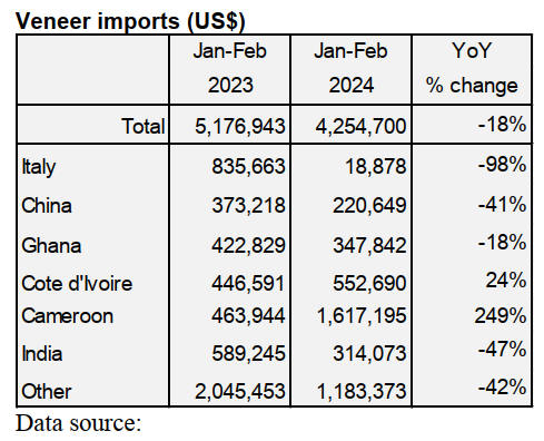 and Cameroon (up 13%). Imports of Mahogany rose 67%