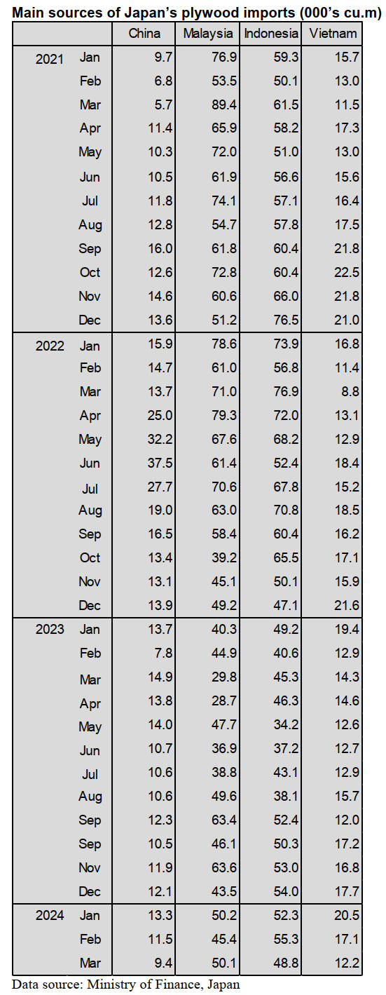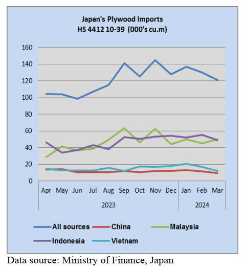 However, shipment of plywood is 20,000 cbms, 12.4 % up