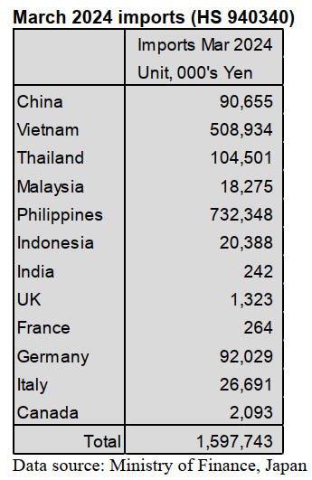 represented just 8% of Japan’s March imports of furniture