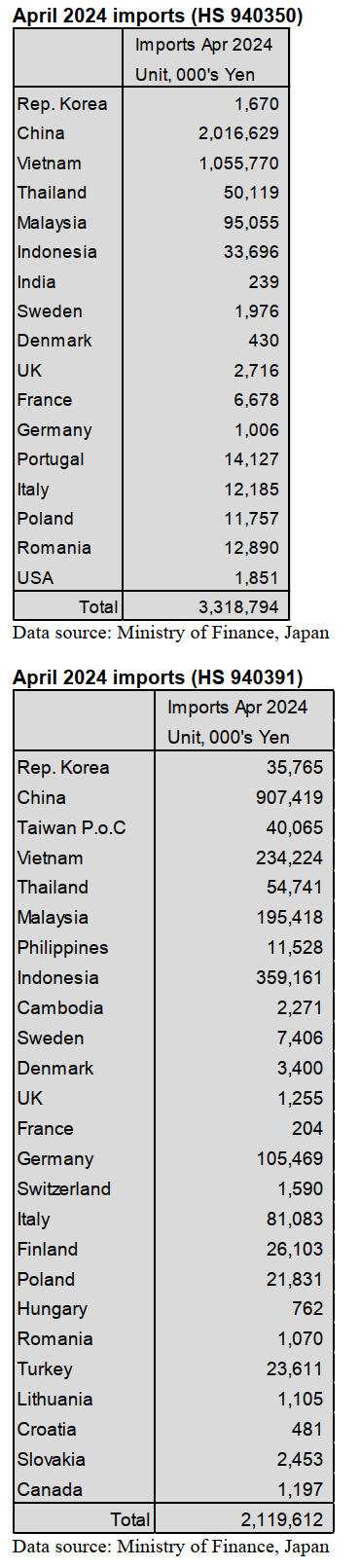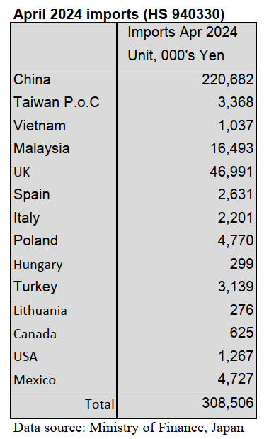April 2024 wooden furniture parts imports (HS