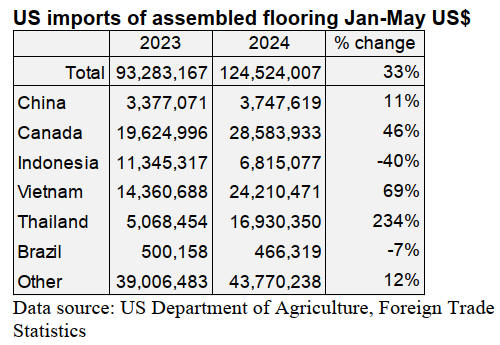 far. Total imports of assembled flooring panels are up 33%