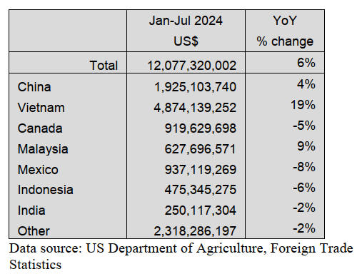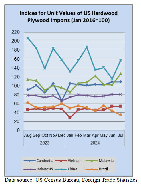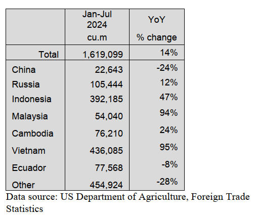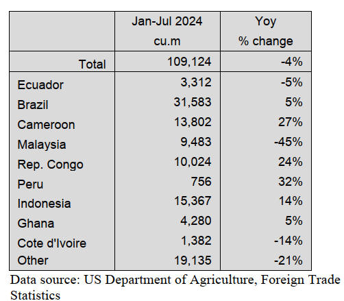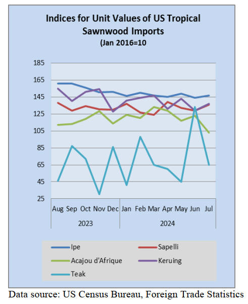 Imports of Sapelli, Mahogany, and Ipe all rose in July to