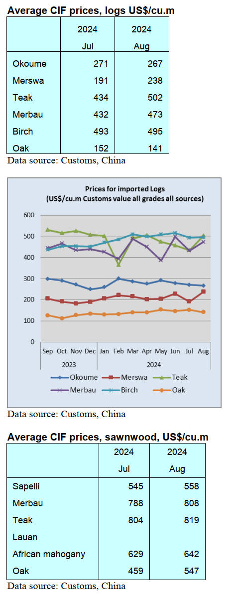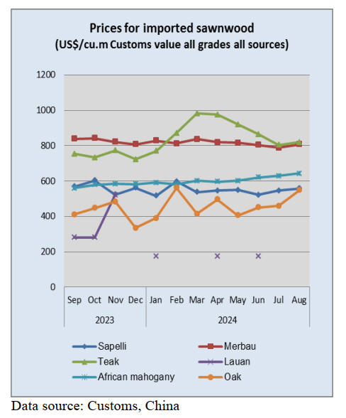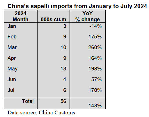 up 19% (log imports 6.566 million cu.m., sawnwood