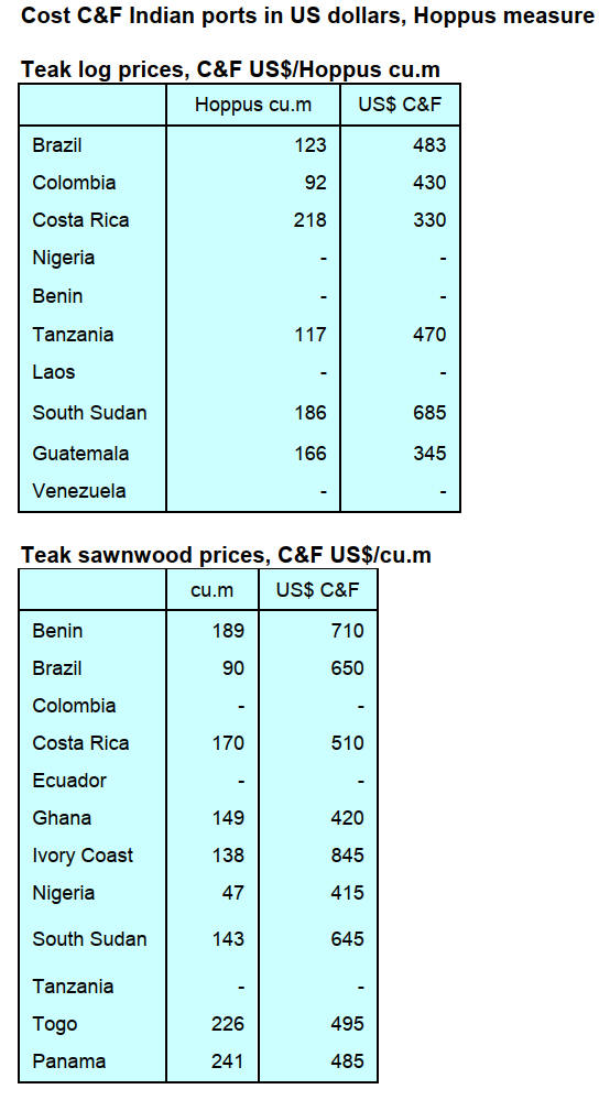 consistent appetite for Tali and Padouk continues, while