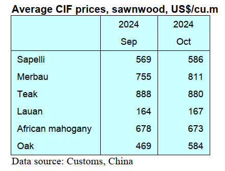 average unit price ofimported timber was US$567 per