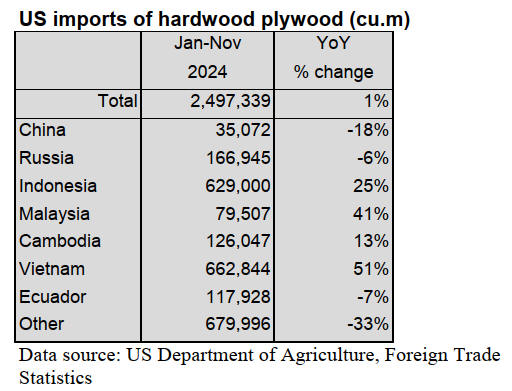 sawn tropical hardwood remain ahead of 2023 by 39%.