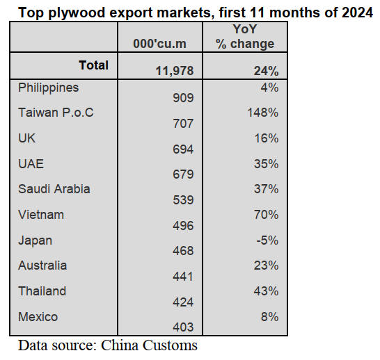 the first 11 months of 2024. China’s plywood imports