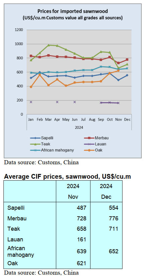 was US$255 (CIF) per cubic metre, down 4% on 2023.