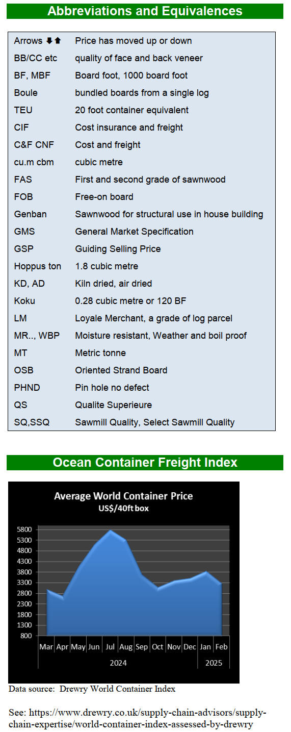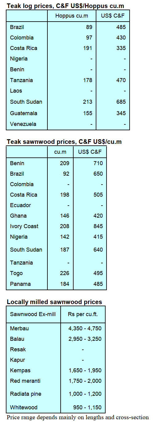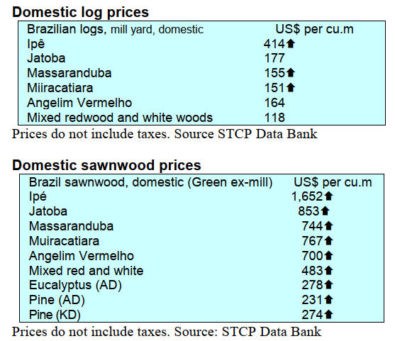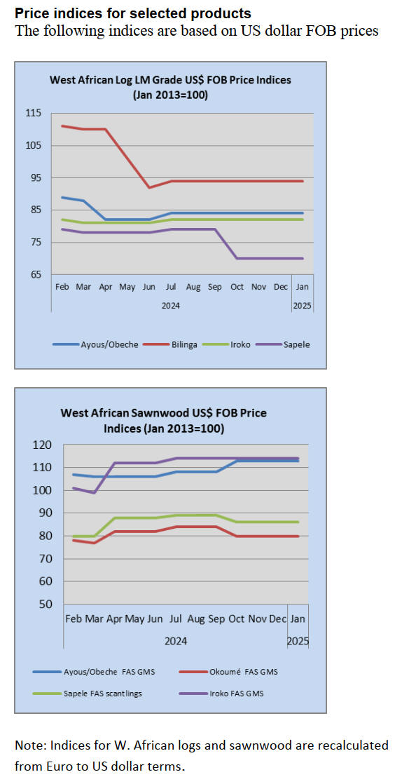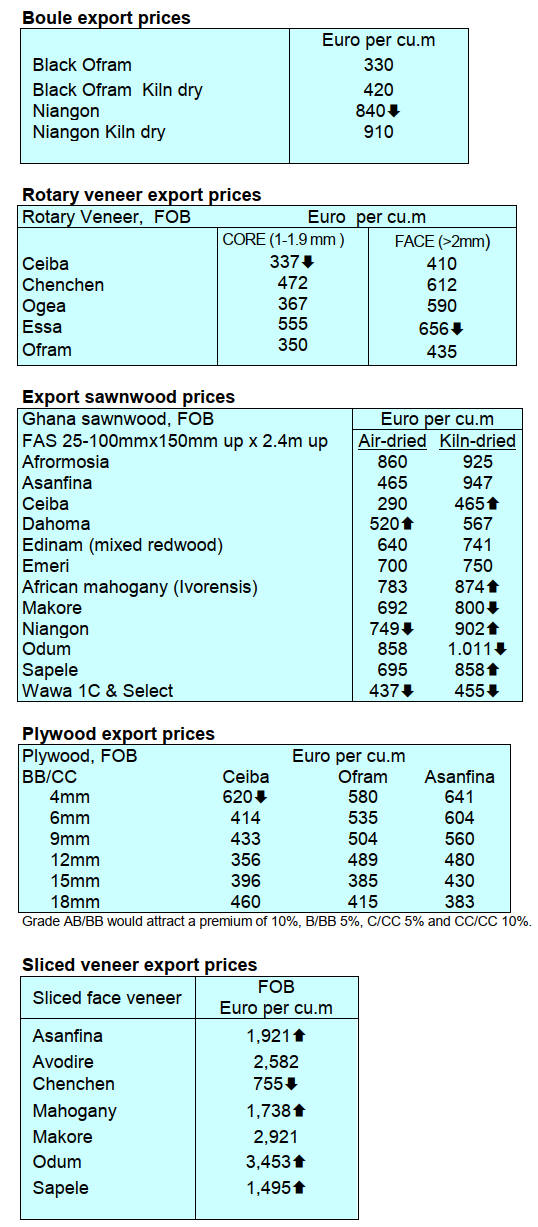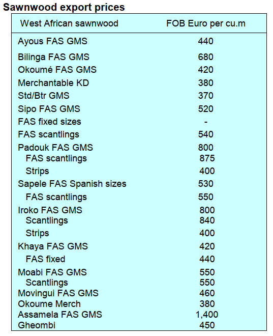 FCFA per cubic metre and sawing-grade logs at 50,000