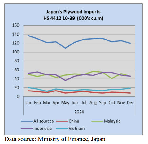 Imported plywood is 2,000,000 cbms, 6.2 % more than