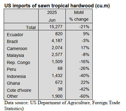 Balsa (down 45%), Ipe (down 28%) and Sapelli (down