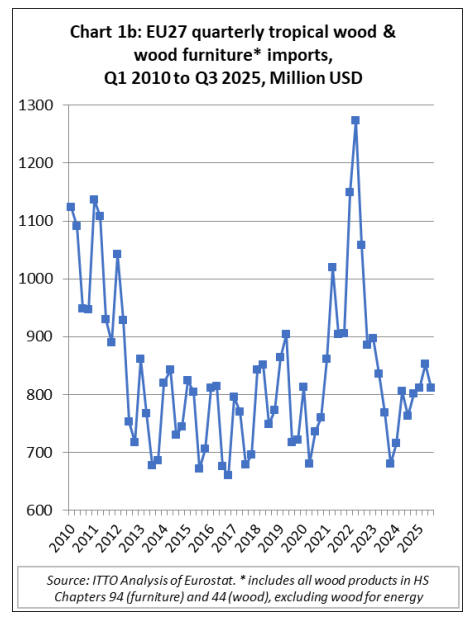The EU27 imported 1,171,600 tonnes of tropical wood