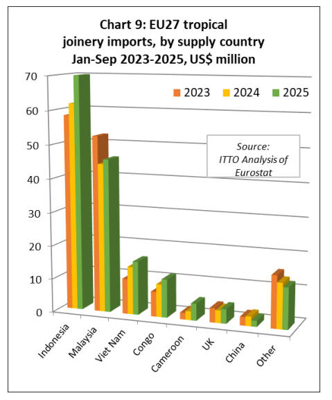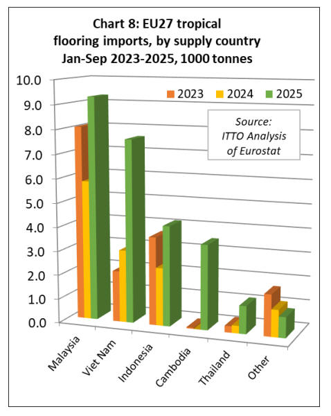 Imports increased by 60% from Malaysia to 9,300 tonnes.