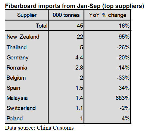 It is worth noting that China’s fibreboard imports from