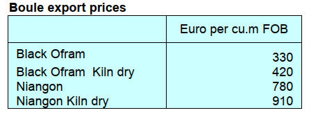 sawnwood prices up by around €20/cu.m. Operators are