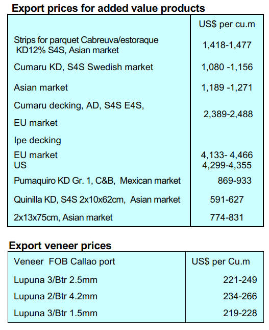 price increases for both logs and sawnwood reflecting