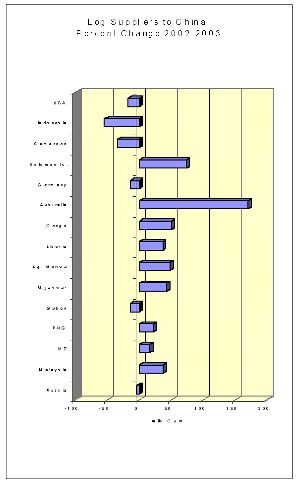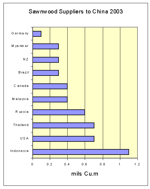 quality Korean Pine, increased to Yuan 1450 from Yuan 1350 per cubic metre. Prices