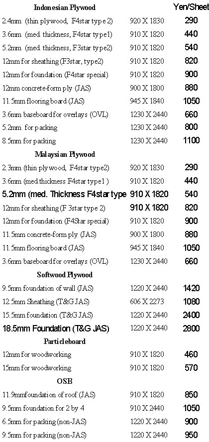Log importers have even tried to compromise by offering logs at cost (without profit) but plywood mills that even still the increase is too high. Even at an "at cost" basis, an increase of Yen 700 per would be required to match the at cost CIF price, this translates to a 13% increase in price compared to the levels in April. Plymills say that they cannot accept this and there has been no agreement so far.