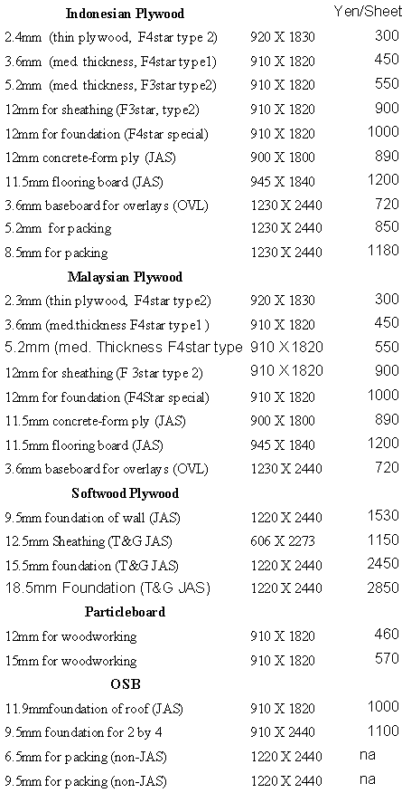 new price for 12 mm softwood structural panel is Yen 940 per sheet