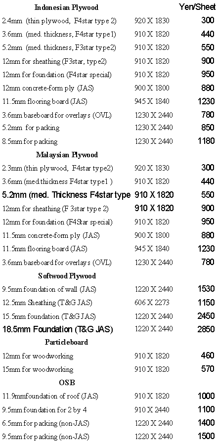 2) prices are Yen 880-900 per sheet delivered. New poplar