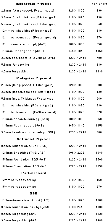 landed prices in Japan. Sarawak meranti regular FOB prices for Japan are US$163-165 per cubic metre (SQ up),which is US$1-2 up on late April prices. Japanese log importers foresee FOB prices will go up as high as US$170. In contrast, Japanese plywood mills expected that FOB prices will fall as the weather gets drier in Malaysia, so the two sides are far apart at present. Market slump