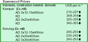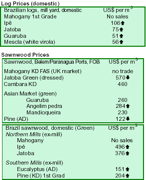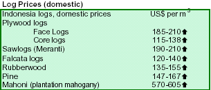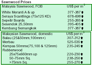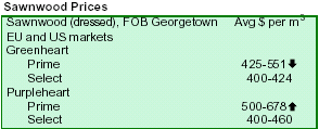 Roundwoods remain in short supply as a result of the recent extended rainy season. This has also affected plywood production. However, the sawnwood market remains very active and prices are gradually increasing. There is increased interest from European, Canadian and