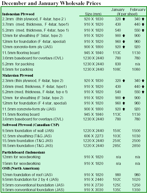 Plywood imports fell 7.5% to 4.57 million m3 in 2005, due to serious log shortages in Indonesia and the ongoing crackdown on illegal log harvest. Malaysia was the
