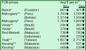 The overall demand for the key species and grades of Southern hardwoods has vastly improved recently. Nevertheless, sales margins for sawmills are still very thin. Log and timber costs seem to be too high in relation to current lumber prices. US Imported Sawnwood Prices
