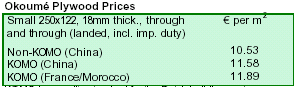 Although the building industry/joineries will not benefit yet from the amended law, some traders report that joineries have sufficient work in the pipeline from the beginning of March. The overall feeling that the economy is emerging from recession is starting to be reflected in the timber trade. Several retailers and importers are reporting busy activities and that a fair amount of business could be done in various tropical timbers. Traders are hoping for the momentum to hold during the second half of the month (and beyond) and be reflected in improved sales prices.